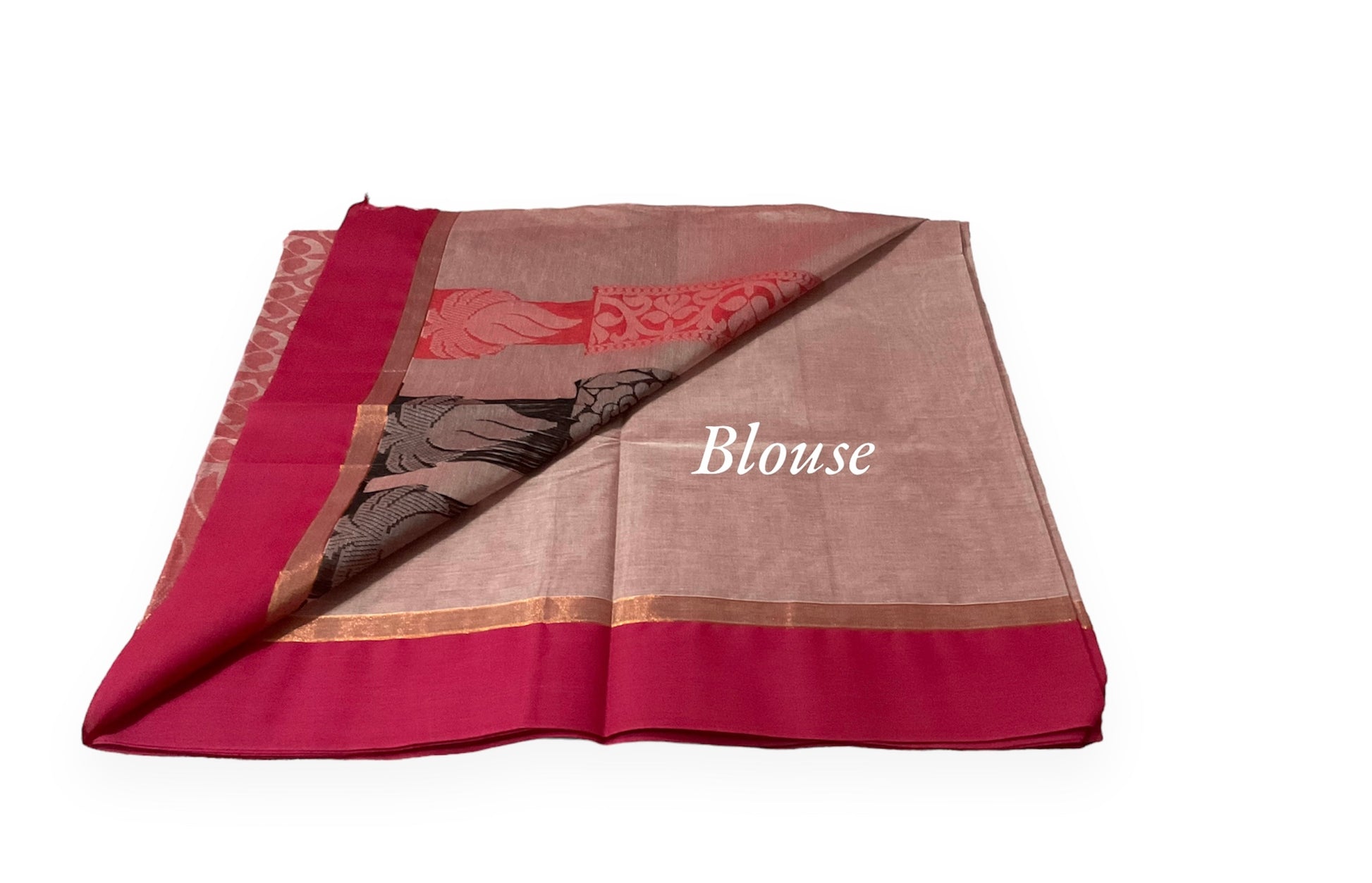 Aalinganam's Handloom Cotton Saree Simple Pink Colour and Zari Border.